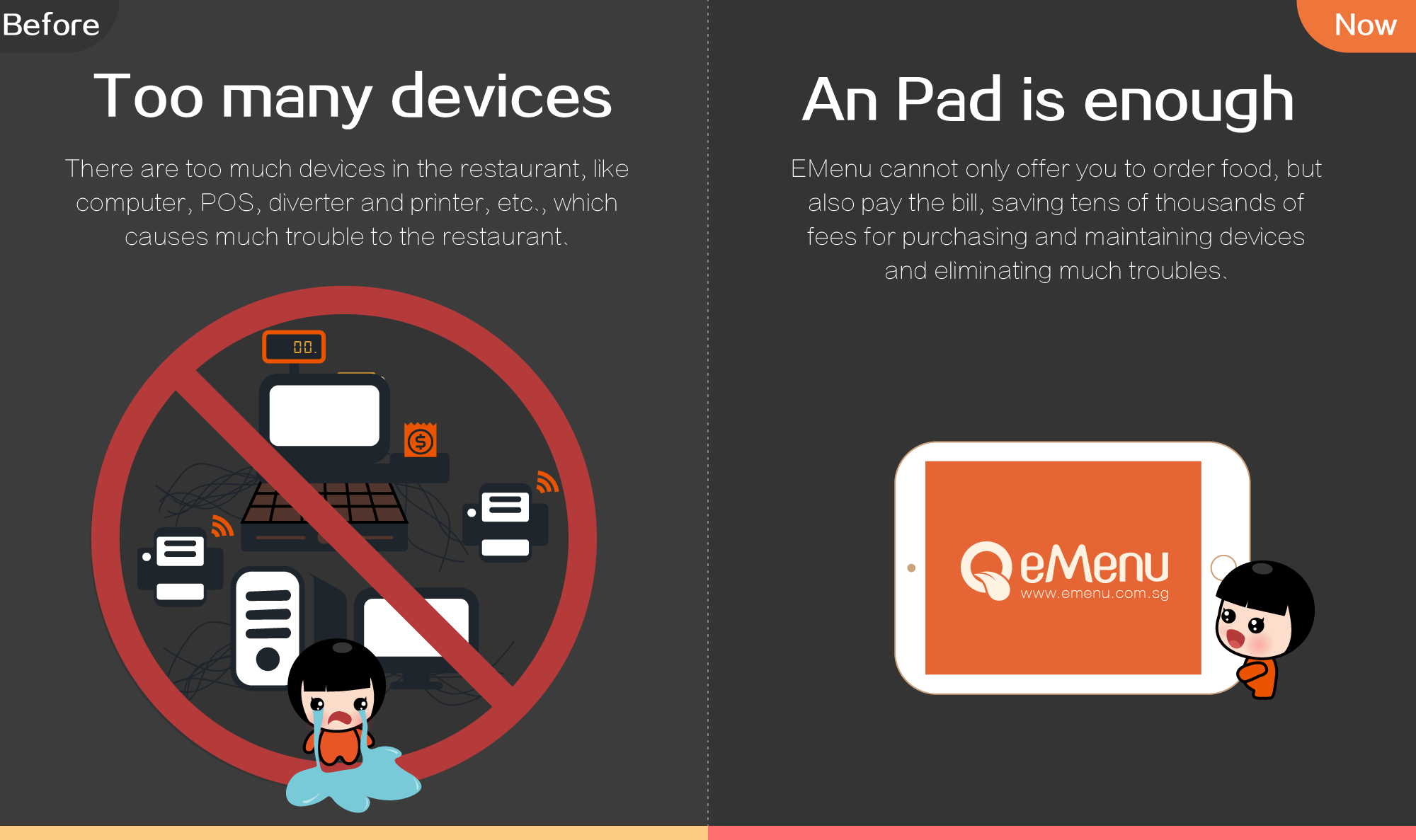 eMenu can join various groups buy and food delivery to manage uniformly, saving hard ware investment and time cost and raising the efficiency up by 80%.