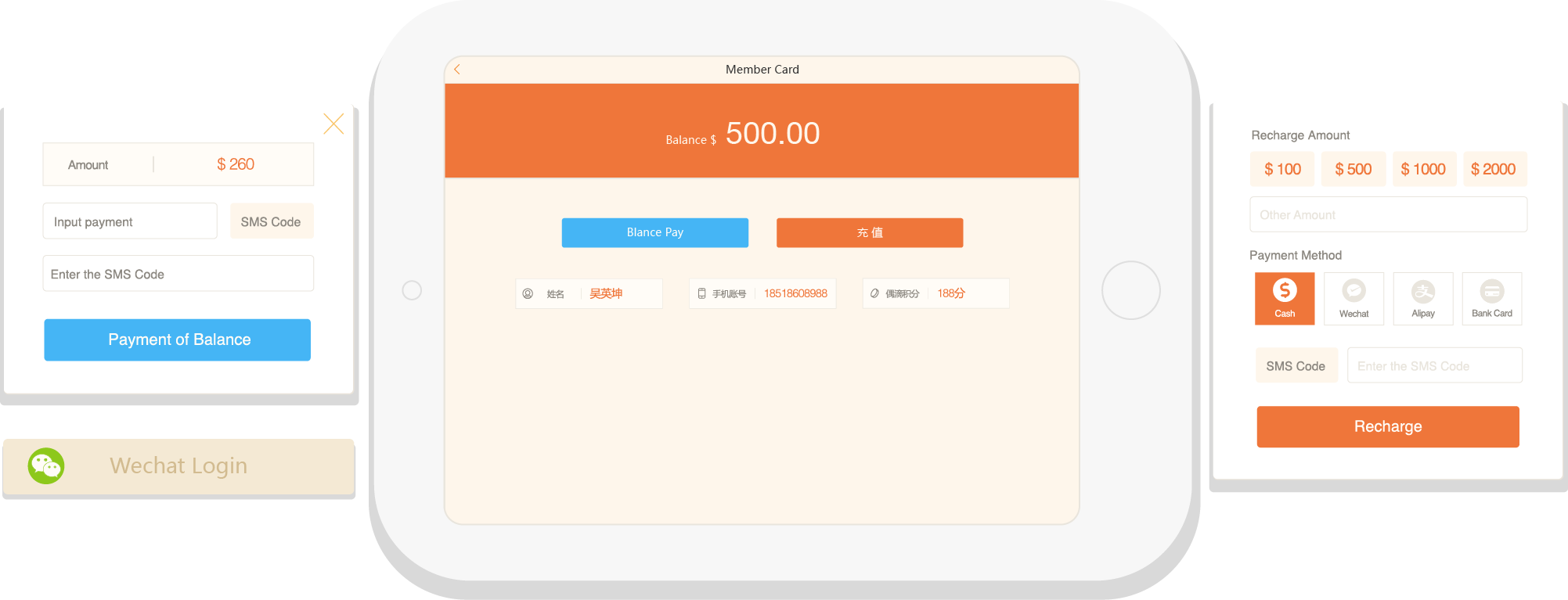 The cashier end is powerful, which not only supports AliPay, WeChat Pay and bankcard,