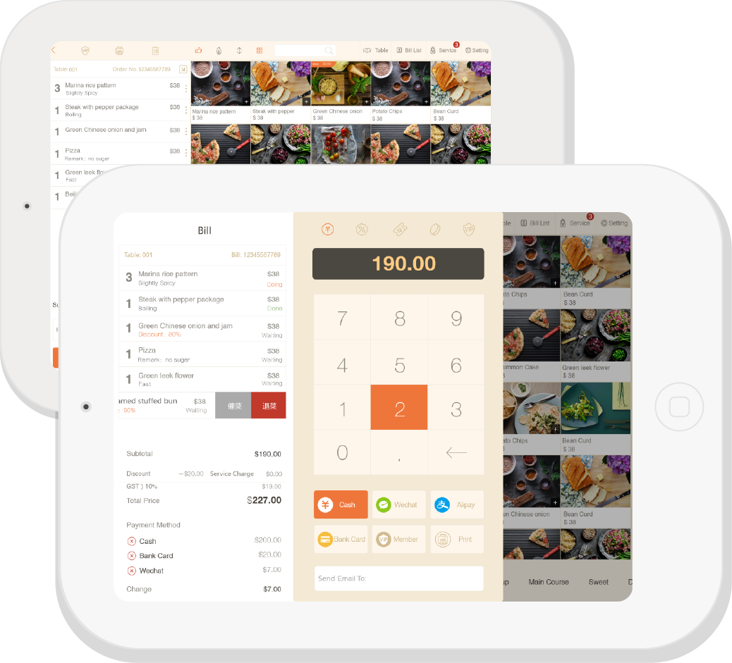 There is no need to worry about confused payment out of business and mistakes. The iPad automatically reflects all the bills. Service end also supports WeChat Pay, AliPay, enabling the customers’ online payment methods and the cashier accurate.